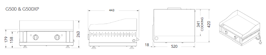 - Superior, compacted griddle plate elements for fast temperature recovery and reliable temperature control
